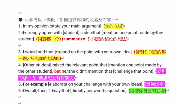 之後要由自己去說明對於該題目的立場以及書寫更多補充或是反駁