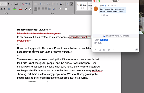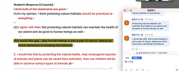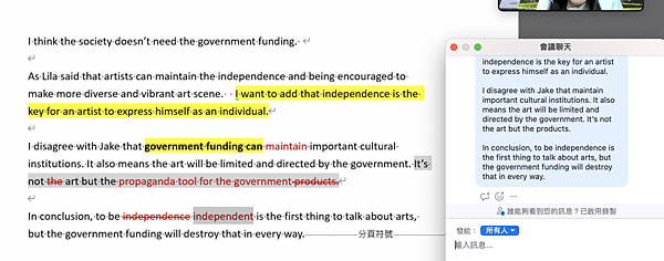 所說的每一句話都要呈現出自己的英文程度,文章理解以及輸出觀點